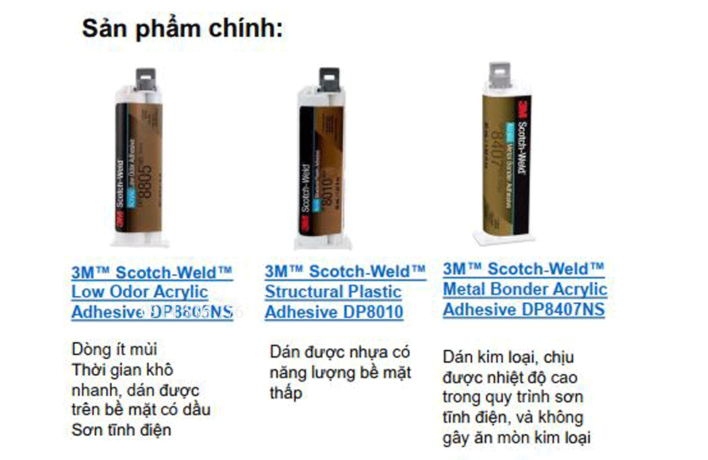 • Dán các khớp lồng nhau trong các chi tiết cơ khí, kim loại, nội thất – với tốc độ khô nhanh giúp cải thiện năng suất lắp ráp đồng thời cho mối dán có độ bền và cường lực cao.