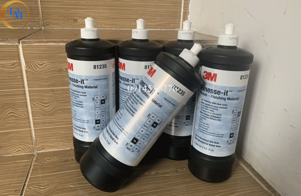 Vật liệu hoàn thiện đánh bóng 3M Finesse-It 81235 được pha chế để loại bỏ các vết xước, khuyết tật hoặc vết xoáy do cát gây ra trên các lớp sơn trong, gỗ sơn mài, bề mặt cứng, sơn gel, sơn tĩnh điện, sơn công nghiệp, acrylic và thủy tinh.